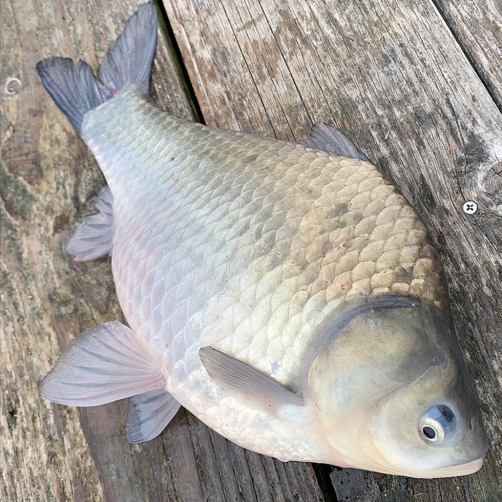 通い続けている埼玉県の椎の木湖で釣り上げたヘラブナは、なんと堂々の46cm(1.6cm)。