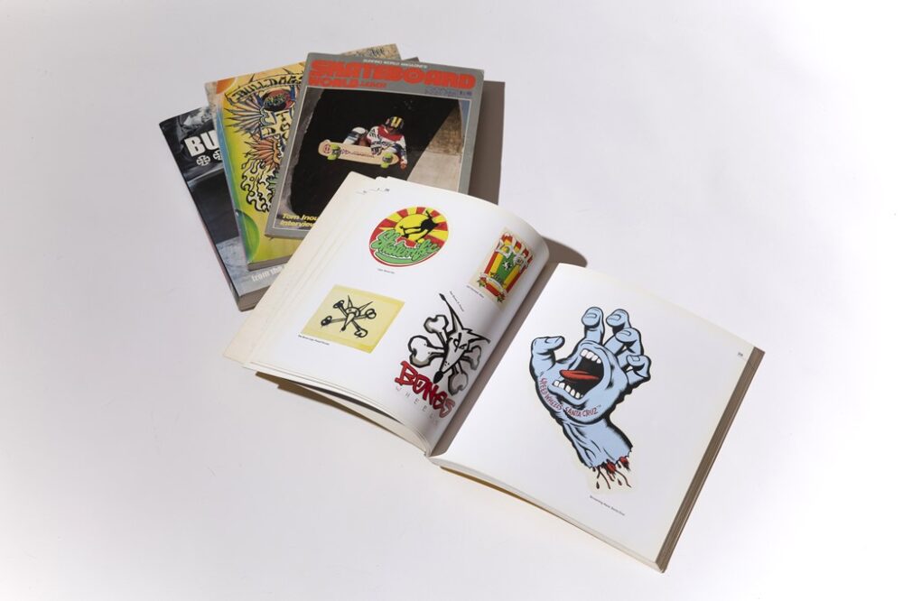 先述のJim Phillipsを筆頭にスケートアート黄金時代のグラフィックをまとめた写真集はじめ、当時のカタログや雑誌などもインスピレーションのひとつという。