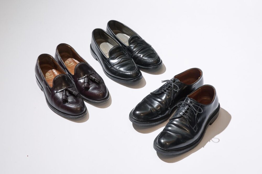 ややクラシカルなスタイルに合わせるのはAldenの名作たち。タッセル、ペニー、990と3モデルともHorween Leather Co.のコードバン仕様。