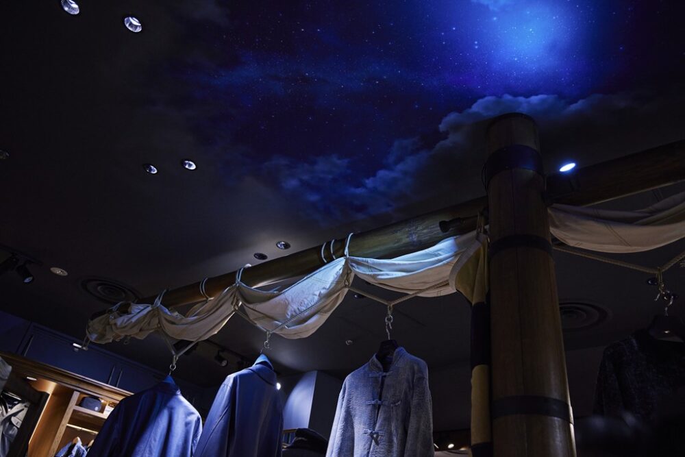種田/この空間を作るのにあたり、様々な映画で仕事をともにした職人さんの中から、この世界観に合う方を厳選して、チームを編成したんです。だからスタッフも楽しんで仕事をしてくれましたね。この空間を作る上でストーリー性も大切ですが、一番は服が主役であること。だから彼らにちゃんとスポットが当たるように、映画のセットとは異なるライティングにしています。
