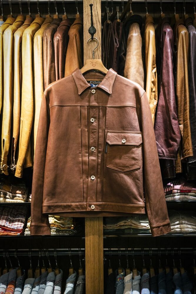 1940年代以前のデニムジャケット、いわゆる1stモデルをDEER HORN SMITH’Sに別注して作ったレザージャケット。¥214,500_