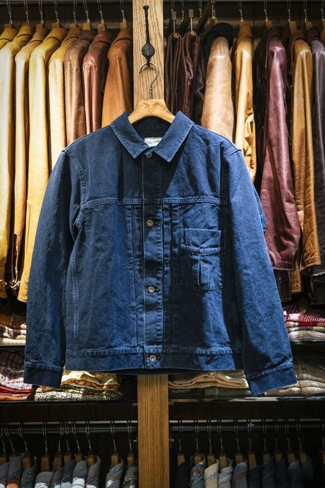 刺し子のジャケットは、Soundmanに別注を施したもの。インディゴ染めされたヘビーな刺し子生地を使用し、1940年代に作られたいわゆる対戦期のデニムジャケットをイメージした。¥39,600_