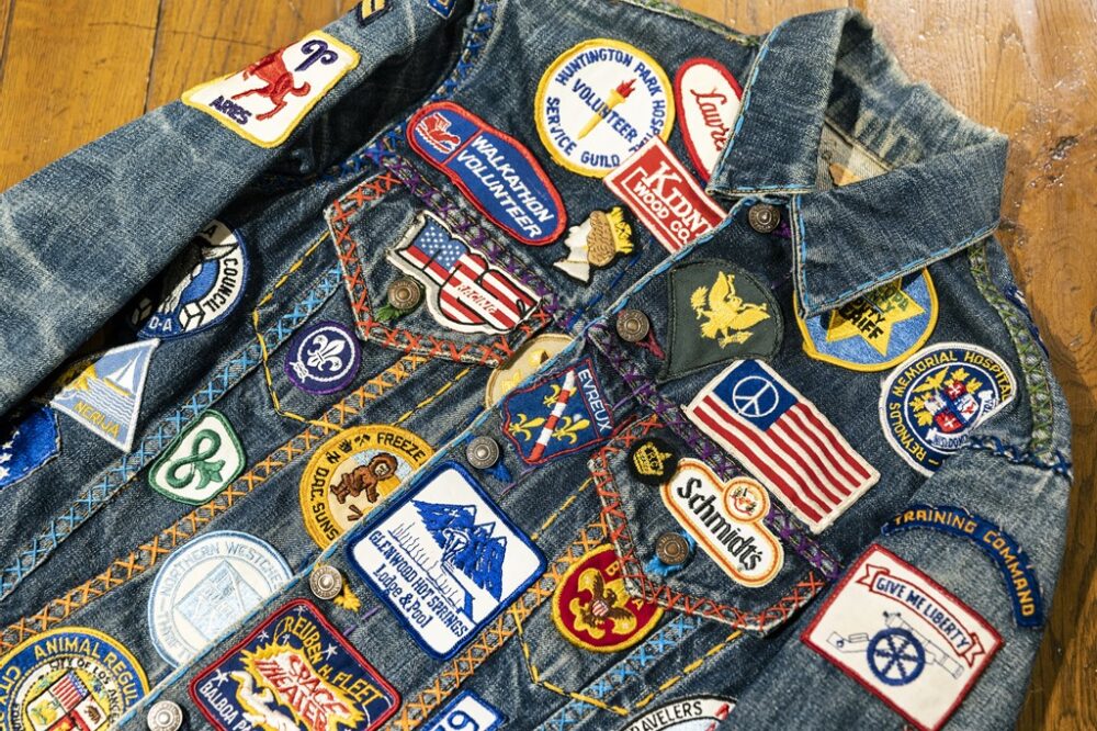 いわゆる3rdタイプのヴィンテージのデニムジャケットをワッペンカスタム。ベースとなるデニムが作られた年代に合わせたものもあるが、目を引く色やグラフィックを優先。