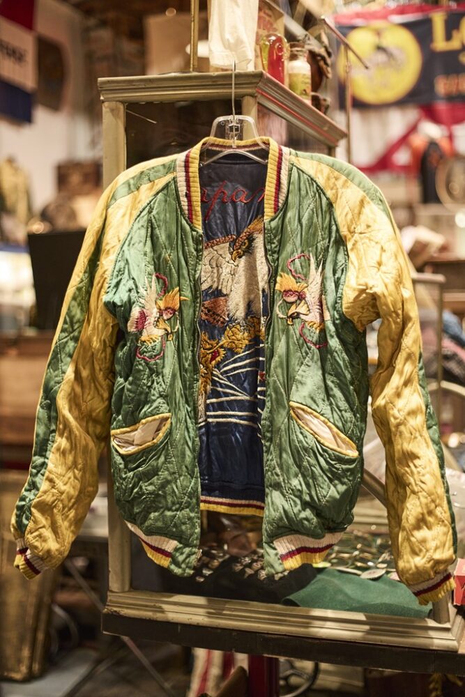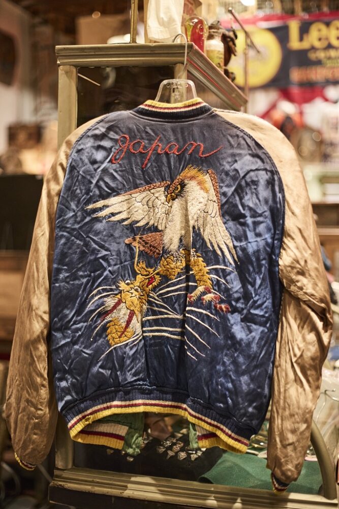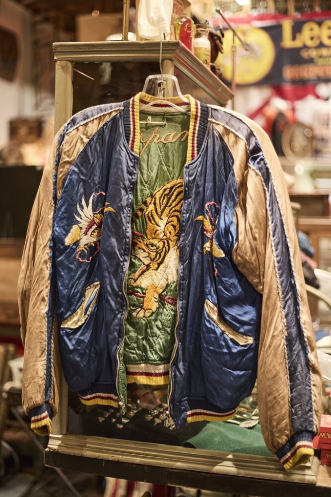 太平洋戦争終戦後、日本に進駐したGHQの兵士たちに絶大な人気を誇ったスーベニアジャケット、通称スカジャンである。カラーや柄の構成でヴィンテージの価値は大きく異なってくる。正確にはミリタリーウエアではないが、兵士たちに愛されたこともあって、ボブはたくさんのコレクションを持っている。日本に再び帰ってくるかもしれないレアなヴィンテージピースをピックアップしてみた。