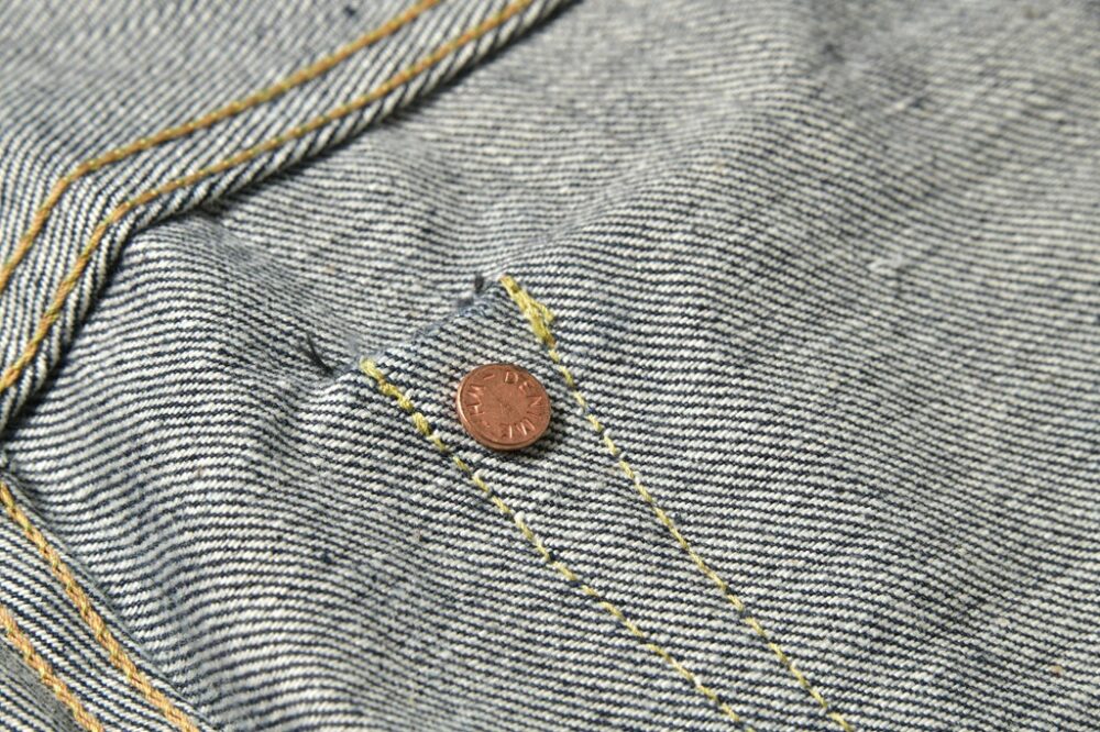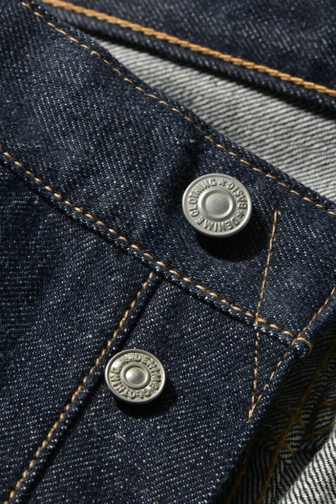 ボタンやリベットなど部材にもこだわる。当時のデザインそのままに素材を一新してヴィンテージ感をプラス。