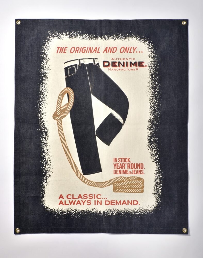 DENIMEの再始動を記念してオリジナルのデニムバナーも製作。デニムの本場アメリカらしさと日本のセンスが交錯したデザインがDENIMEらしい!