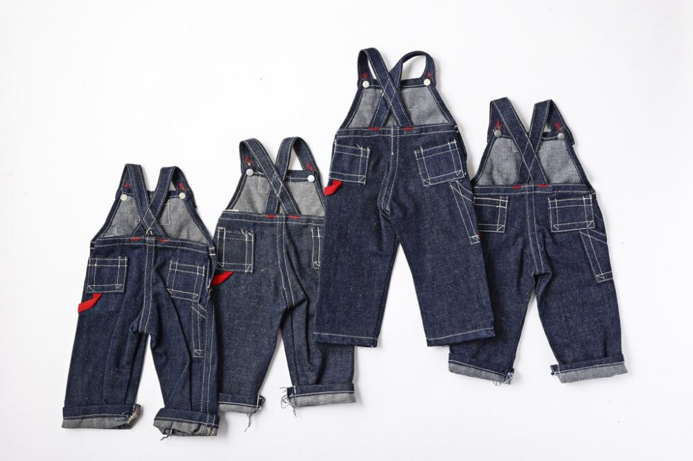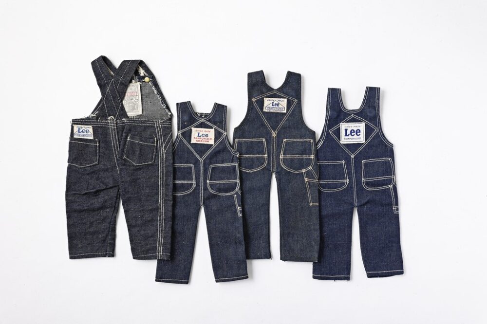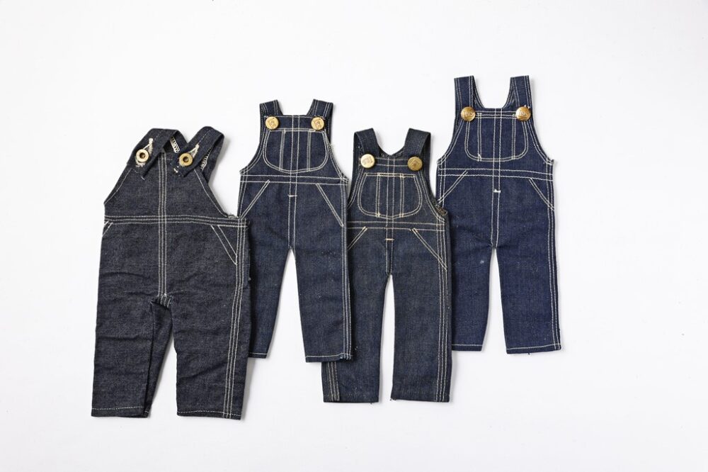 91のオーバーオールのサンプルは、左から1920年代、’30年代後期、’40年代、’50年代。ユニオンチケット付きにこだわった。