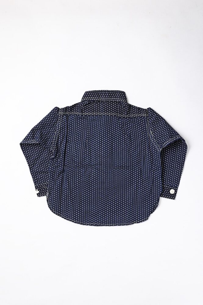 セールスマンサンプルのサイズながらも、ボタンにクラウンの刻印がある繊細な作りが特徴的。コレクターズアイテムとして人気のある希少な杢デニムを使ったセットアップだ。