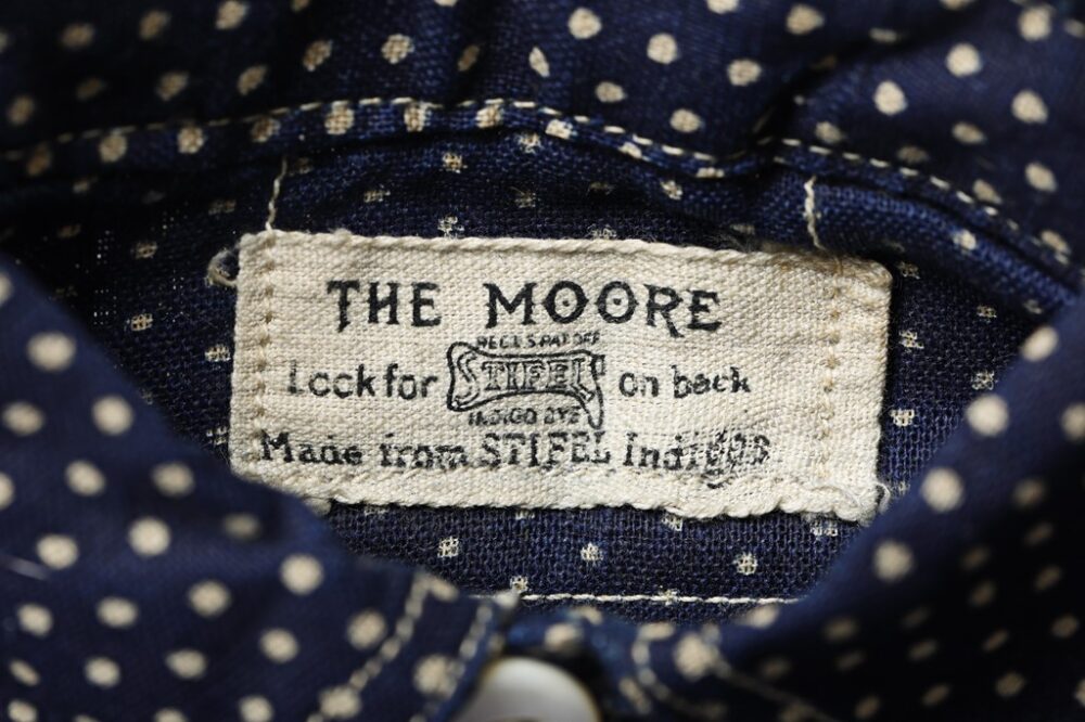 ポルカドット生地裏面のSTIFEL社のスタンプに加えて、タグにもネームが入る珍しい仕様。チェンジカラーではなく、チンストラップ付き。カフスも非常にユニークな意匠だ。