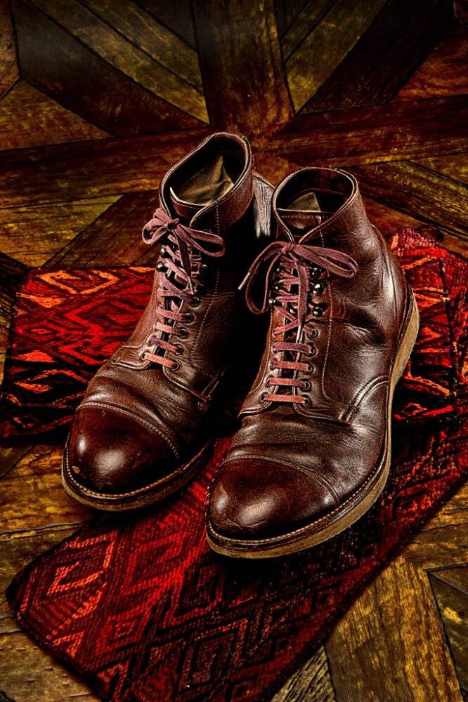 ANATOMICAとパートナー関係になる前、パリのショップに何度もお邪魔していた頃、2008年頃に購入。モディファイドラストを使用し、アッパーがコードバンの別注Aldenです。もちろんこれを買う前からAldenを愛用していましたが、まさかフランスでAldenについて詳しく知ることになるとは思っていませんでした。モディファイドラストが足に負担なく疲れにくいということやフィッティング、サイズ選び、人間の足型。ピエールさんと欣児さんの話を聞いて、もう1度買い換えるきっかけとなったのがこのブーツです。