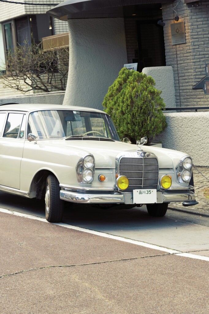 1965年式メルセデス・ベンツ220(W111型)のオーナーである菊地章仁さんは、クラシックなハットメーカーとして海外にも多くのファンを持つTHE FAT HATTERのオーナー兼デザイナー。15年間もの長い期間をかけて手に入れたのがこのクルマだった。
