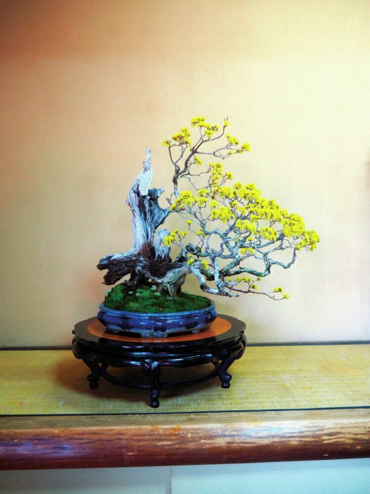 世界各地を飛び回ってきた多賀谷氏だからこそ、日本の四季折々の魅力に、心を動かされる。盆栽は長い年月をかけて、育てられ、作品になっていく。育てると言っても、大きくならないよう、そして美しい枝ぶりになるよう丹念に剪定される。日本固有の芸術文化である。