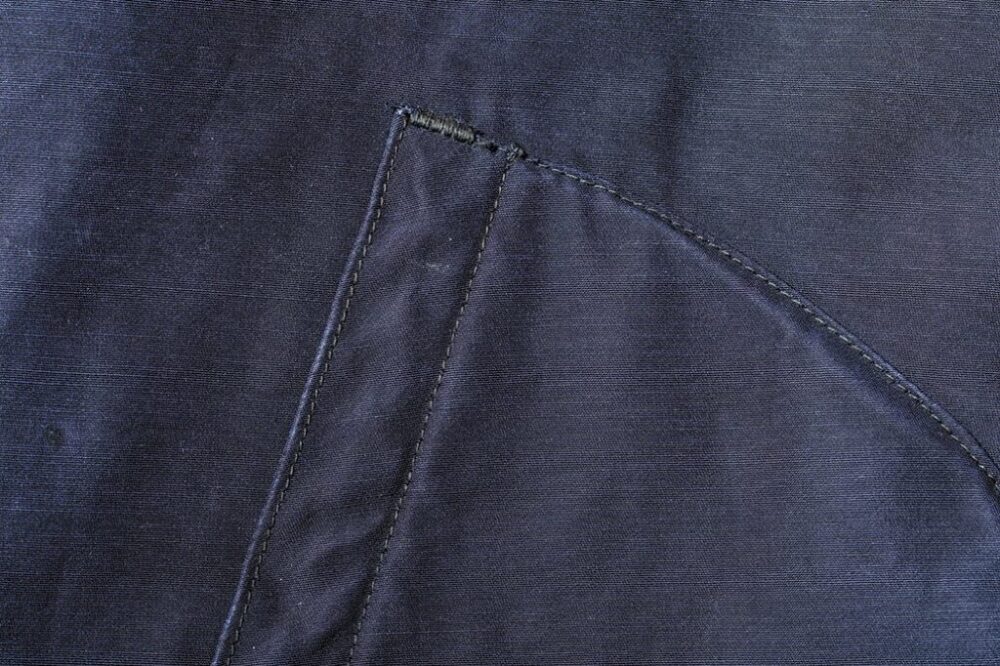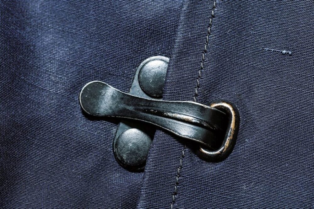 本来はコットングログランを使っているが、この個体は経糸にレーヨン、緯糸にコットンを用いたスペシャルな仕様。同年代に同じ素材のレインコートが存在することから、防水性と防風性を狙った仕様なのだろう。タグとフロントのフックのデザインから、1943年頃に生産されたものだと思われる。この個体を手に入れた当時は、誰もが未知の仕様だったため、アメリカのイベントで売れ残っていたものをベルベルジンの山田氏が発見。