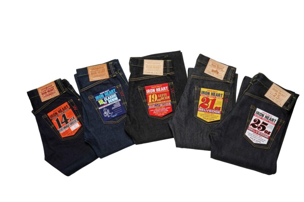 IRON HEARTのヘビーオンスデニムと言えば創業時から続く21ozが代表作だが、それだけでなく14オンスから25オンスの全5シリーズをラインナップ。猛者揃いの日本のデニムブランドの中でも随一の層の厚さを誇る。