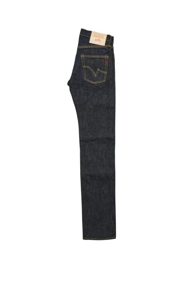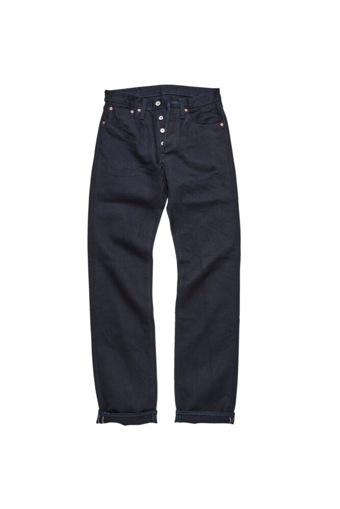 経糸、緯糸共にインディゴロープ染の糸を採用したストレートシルエット。濃いフラットなインディゴの色味からスタートして、ダイナミックなエイジングを楽しめる。