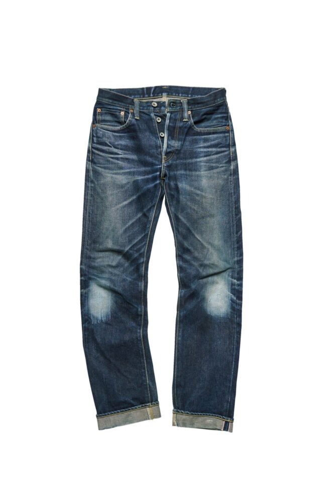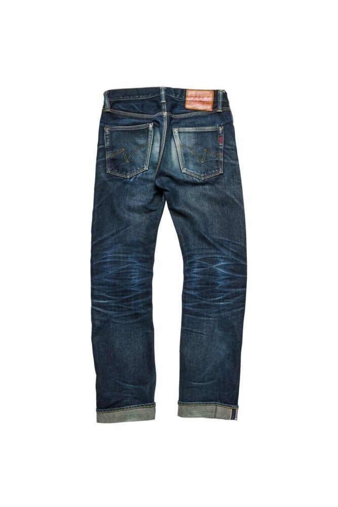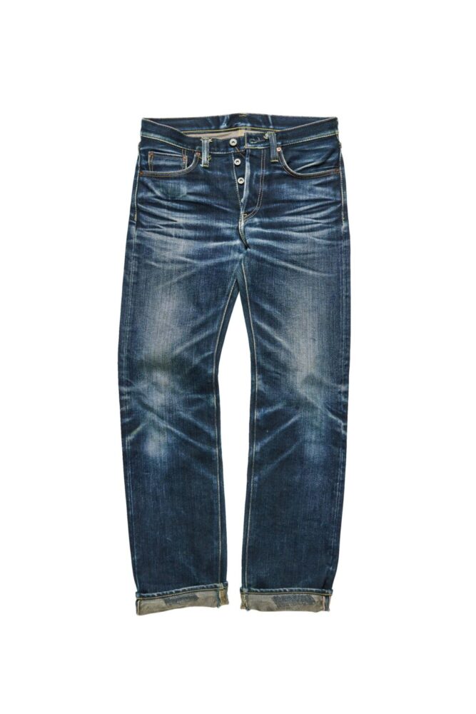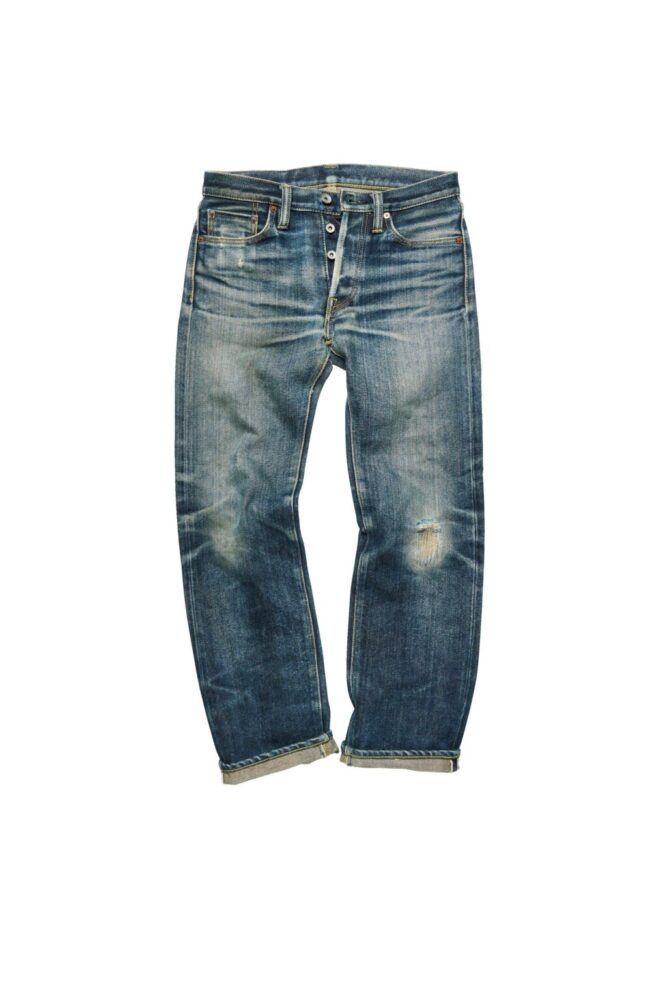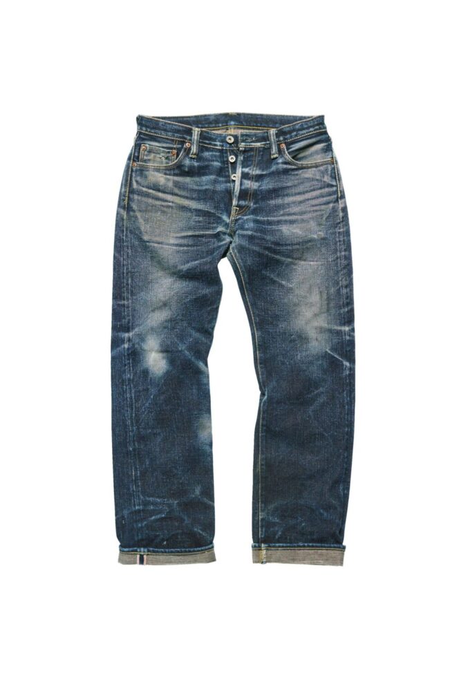 上の634S-18と同素材を使用したスリムストレートはスタイリッシュな着こなしに似合う。細身ゆえに股や膝裏のアタリが出やすく、よりダイナミックな色落ちを味わえる。