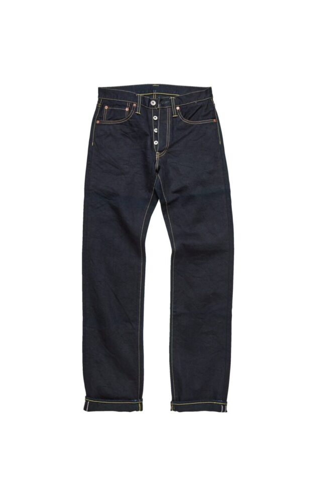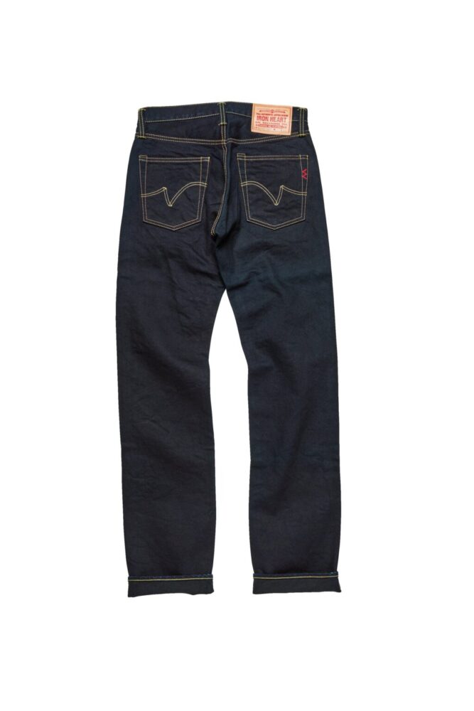 21オンスデニムのストレートシルエットはIRON HEARTを象徴するアイテム。タフでありながら適度に柔らかく、バイク乗りを中心に根強く支持されている。こちらは左綾モデル。