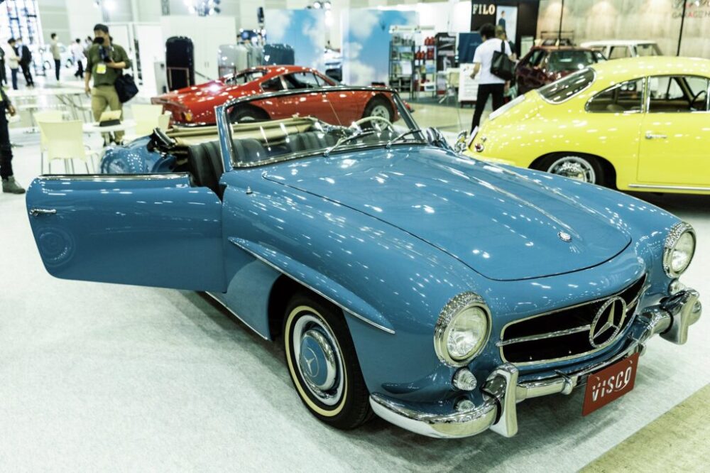 1954年にニューヨーク国際オートショーでデビューした初代190SL。同時に走りに特化したスパルタンな300SLも解禁され、注目を浴びたカリスマ的モデルとして知られる。