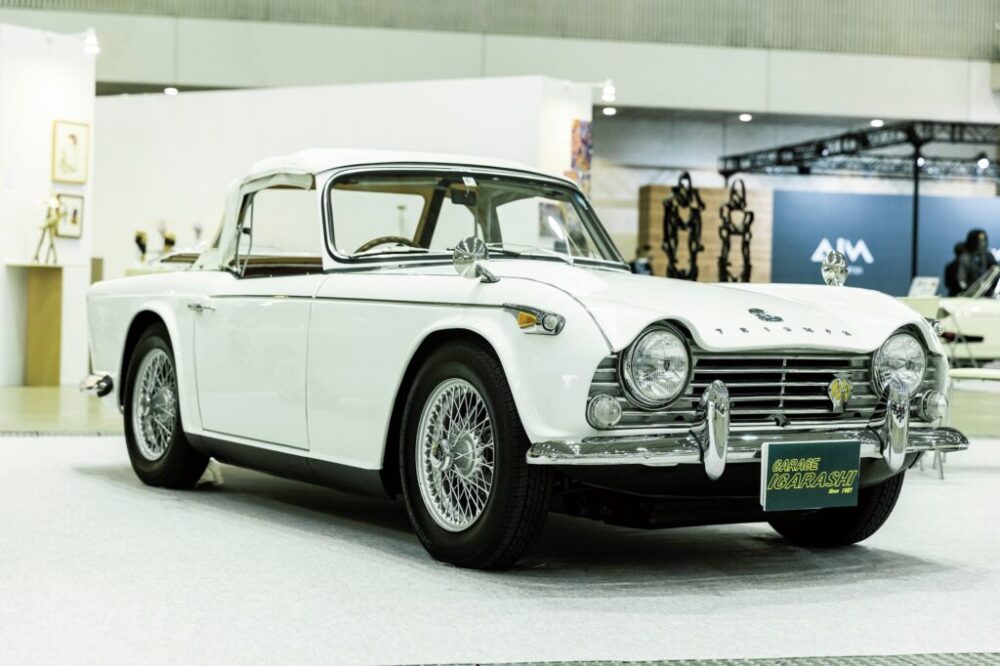 イギリスコベントリー工場にて1965年に製造されたTR4。小型スポーツカーとしてレースに出場していた歴史はもちろん、当時、警察車両としても使われていたモデルでもある。