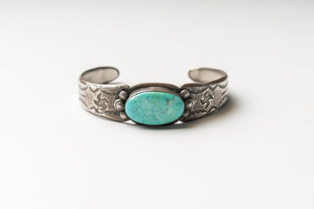 ネイティブアメリカンジュエリーの黎明期に作られたプリミティブな作品。多くのナバホ族の現代作家が、リバイバル作品を制作しているスペシャルピースのひとつである。