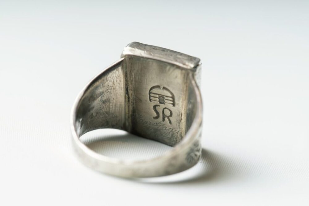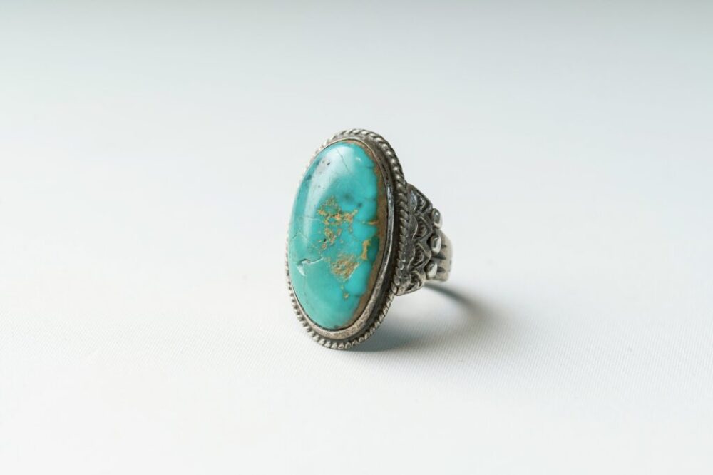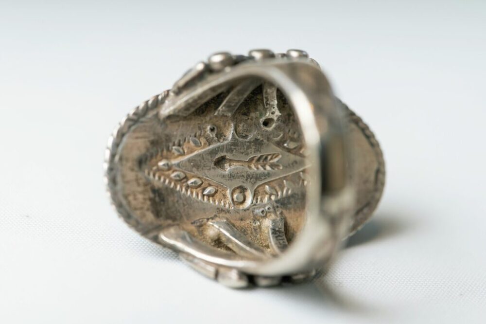 大胆なターコイズ使いが光るリングは、現行作品では定番となっているインナースタンプが施されている。この手の意匠は、アンティークでは滅多に見られず、スペシャリティなピース。