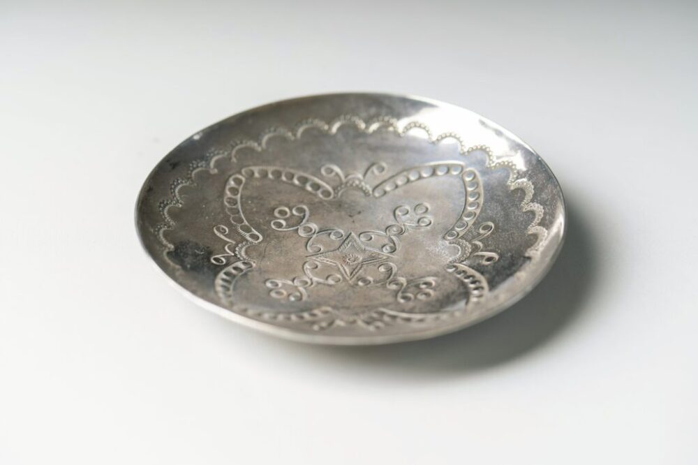 今も多くの作家がベースとするトライアングルシェイプの作品。ただ現行とは違い、インゴットシルバーから形成された力作であり、シンプルなスタンプワークが叙情的である。