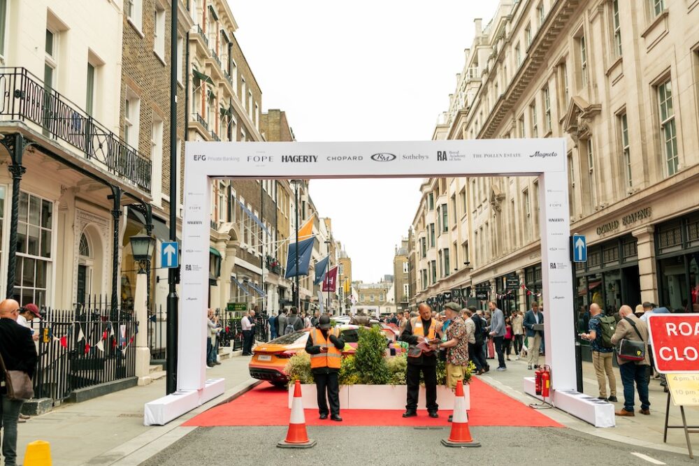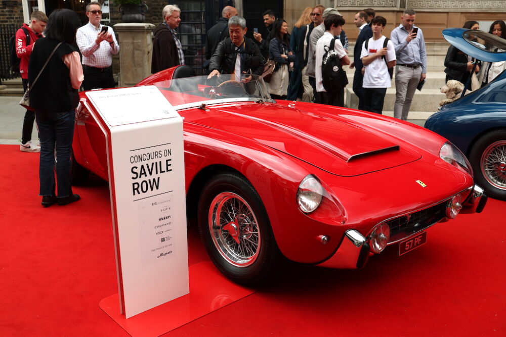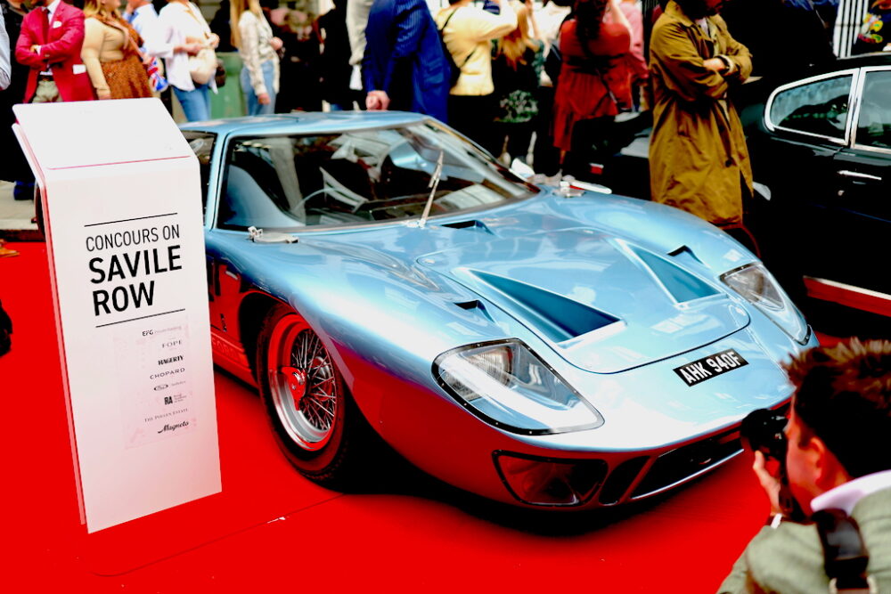 しかも、この2日間はサヴィル・ロウは通行止めになって、レッドカーペットが敷かれて、戦前のヴィンテージカーから最新の電気自動車までを自由に観覧できる道となっていました。