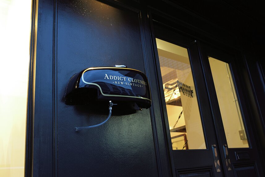 場所は名古屋駅から地下鉄桜通線で1駅の太閤通駅から徒歩圏内という好立地。ロバートハウスが手掛けた店内には、ADDICT CLOTHES、ACVM、ADDICT BOOTSの自社ブランドが揃う。WEB通販も充実しているが、ぜひ、その上質感を体感してほしい。