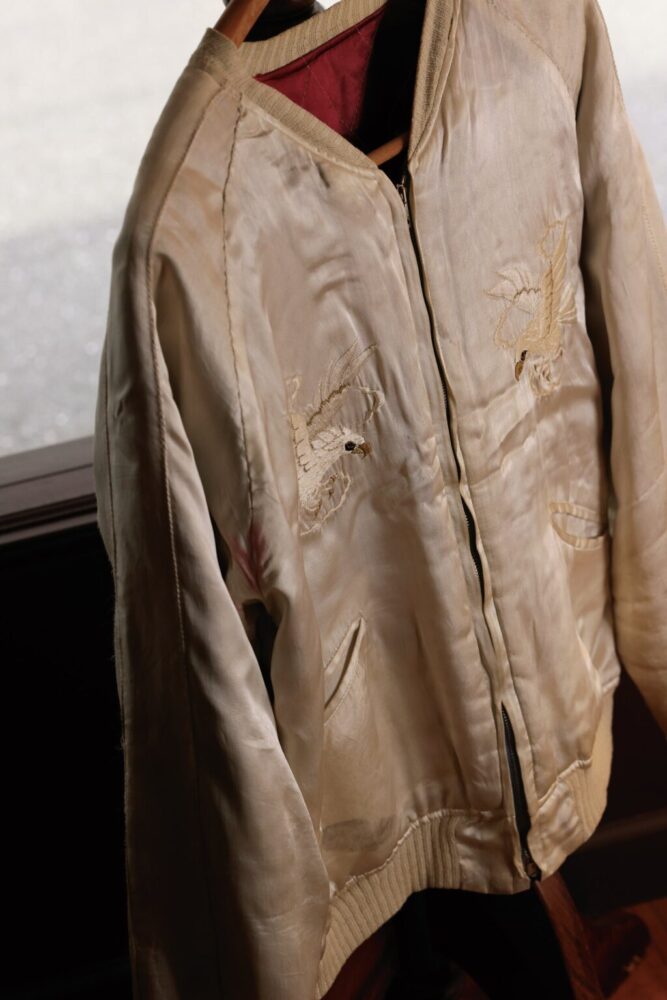 1950年代のヴィンテージスカジャン白ボディに白の刺繍が施されたいわゆるスケルトンは希少な個体。3年ほど前にSNSを通じて、L.A.のヴィンテージショップから購入したもの。