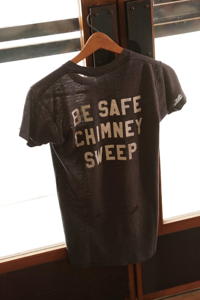 ボディは不明だが1960年代のフロッキープリントTシャツ。煙突清掃員のユニフォームと思われるものでバックプリントが良し。