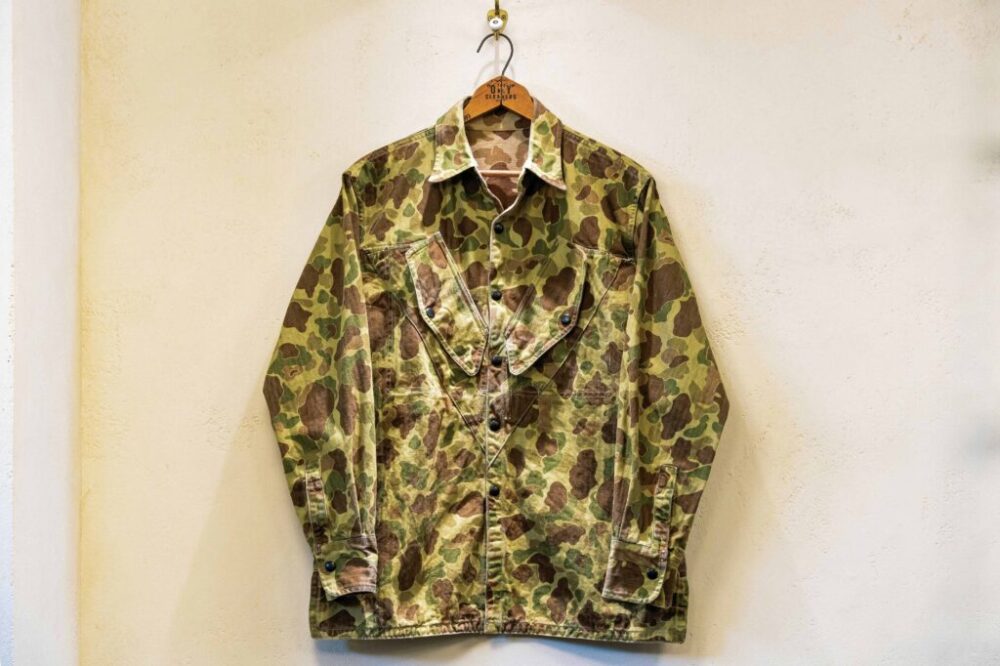 アメリカ海兵隊のパラシュート部隊員用のコートを生地から再現。着用するたびに迷彩が掠れてリアルなエイジングが見られる。表がグリーン、裏が褐色系のリバーシブル仕様。