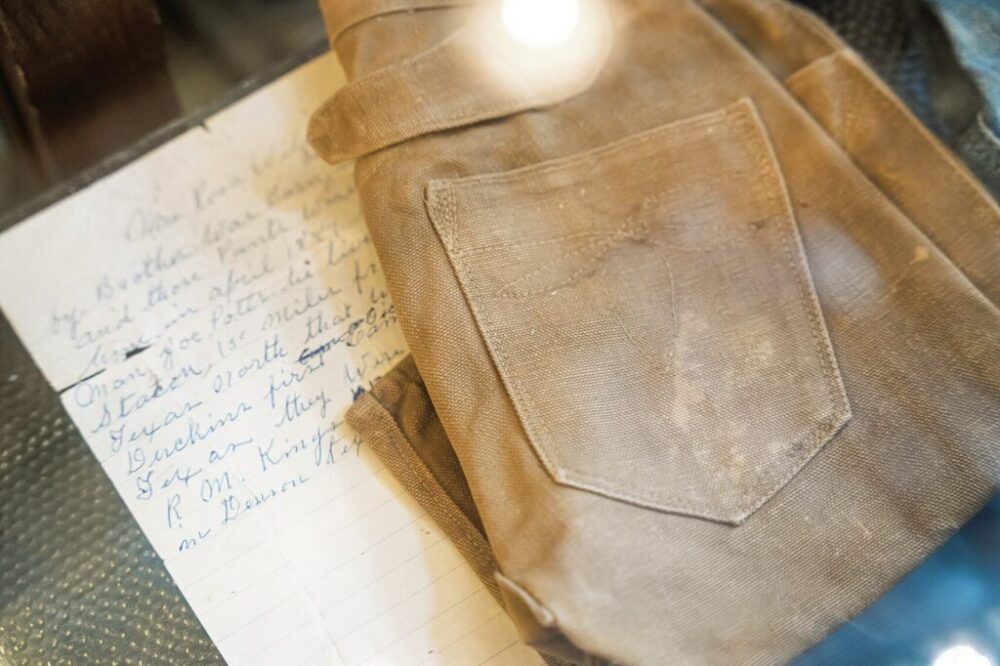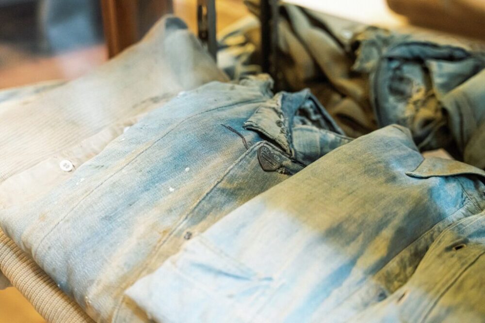店内に配置されたガラスのショーケース内には、デニムをはじめとするワークウエアなど他ではお目にかかることのできない希少なヴィンテージアーカイブが収納される。