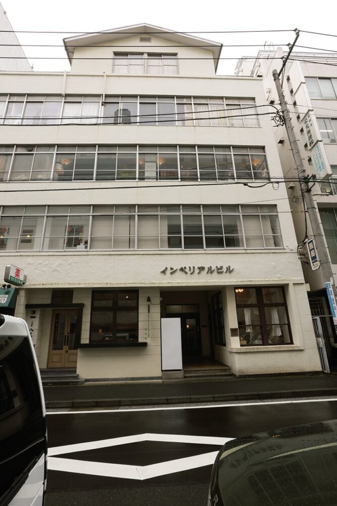 山下公園通りから内陸側の水町通りに面する噂のインペリアルビル。竣工したのはなんと戦前の1930年。大正末期から昭和初期にかけてモダニズム建築を得意とし、活躍した建築家、川崎鉄三が建築設計に携わった史実は残されている。当時、この建築家が関わった建物は他にも同じ横浜市の中区海岸通りに2棟、ジャパンエキスプレスビルと昭和ビルが、現在も残されているのは興味深い。