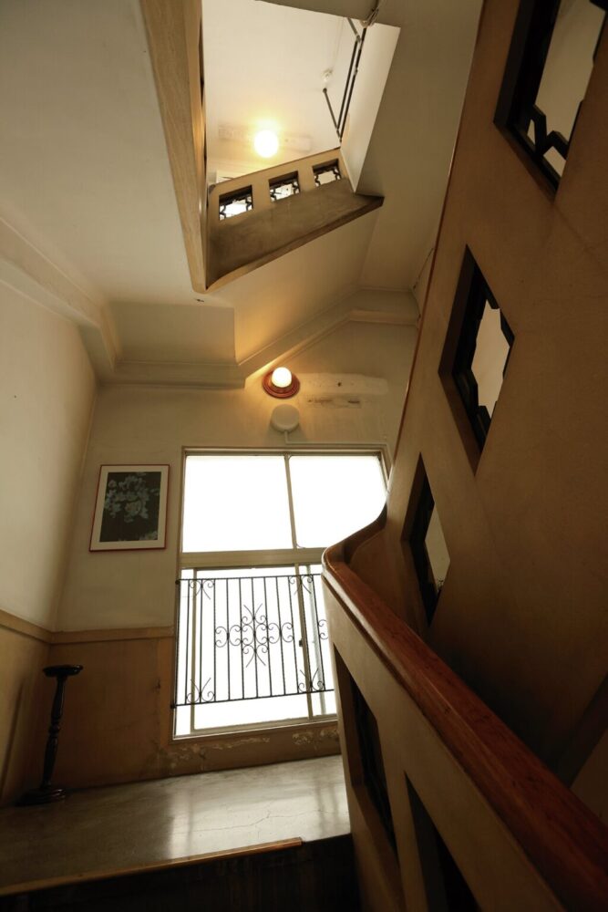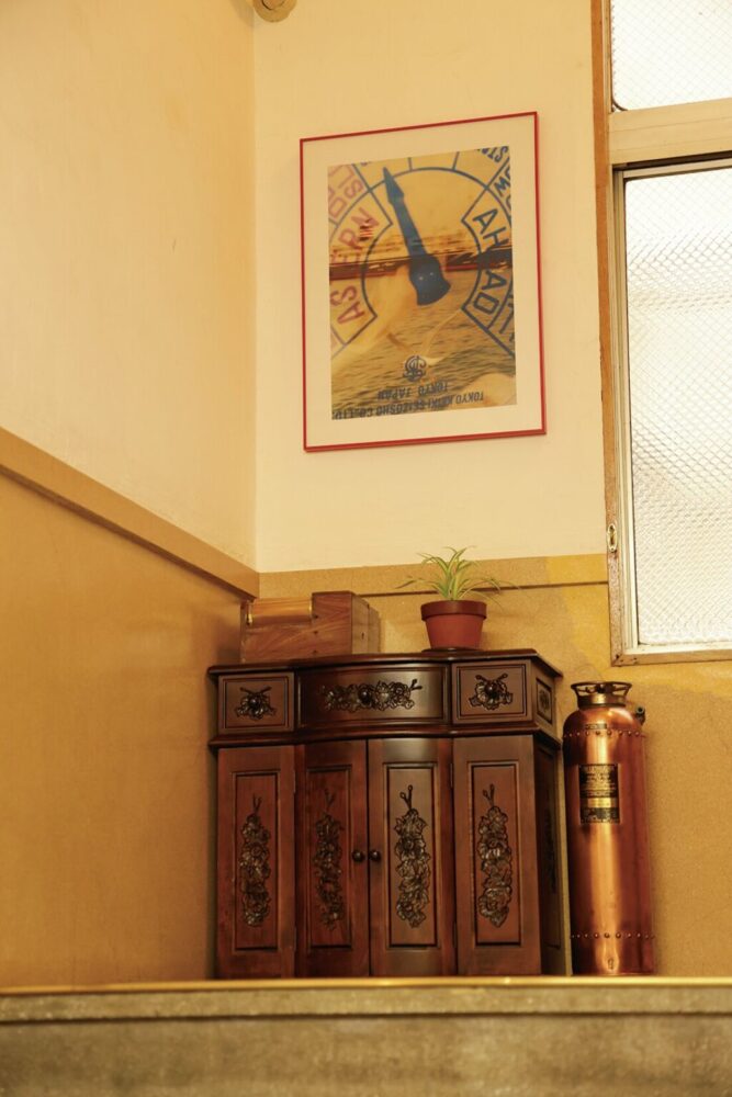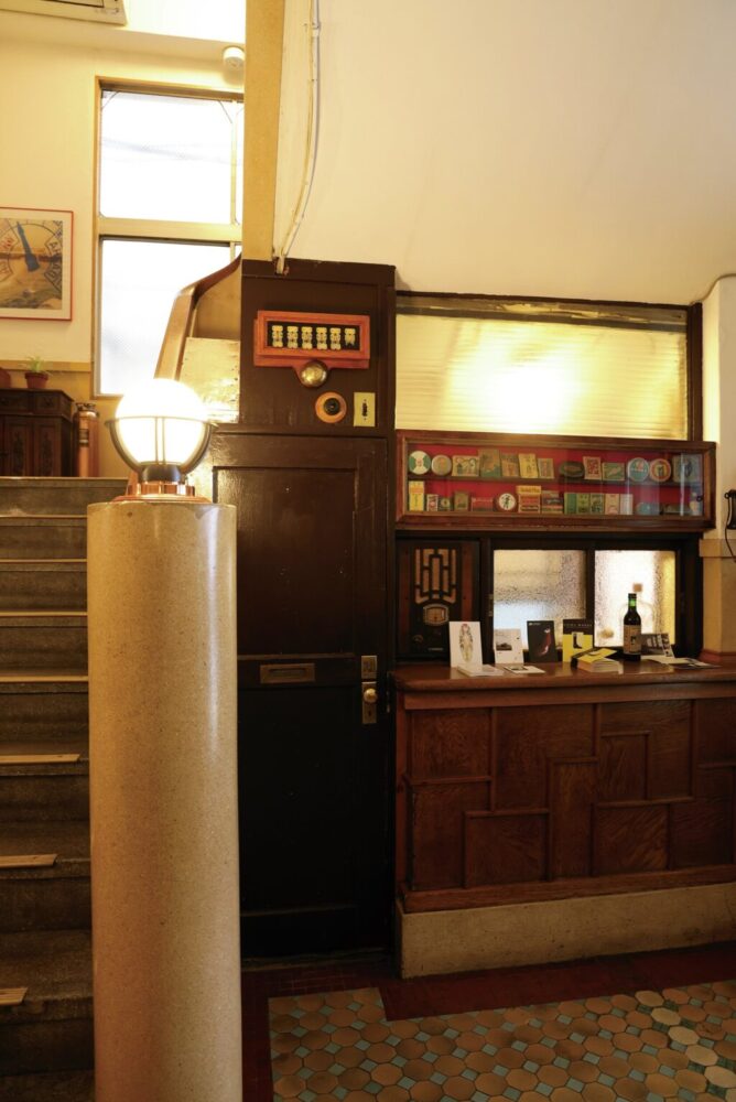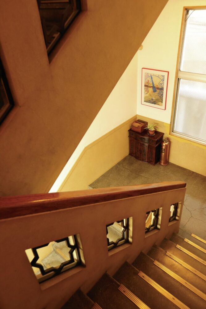 このインペリアルビル、実は設計時から外国人専用のアパートメントホテル、つまり長期滞在型ホテルとして設計されていたという。そのため、内観はいまでも異国の空気が流れているような昭和レトロモダンな内装、階段や踊り場にもヴィンテージ愛に詰まったインテリアが置かれている情緒溢れる空間に仕上がっている。