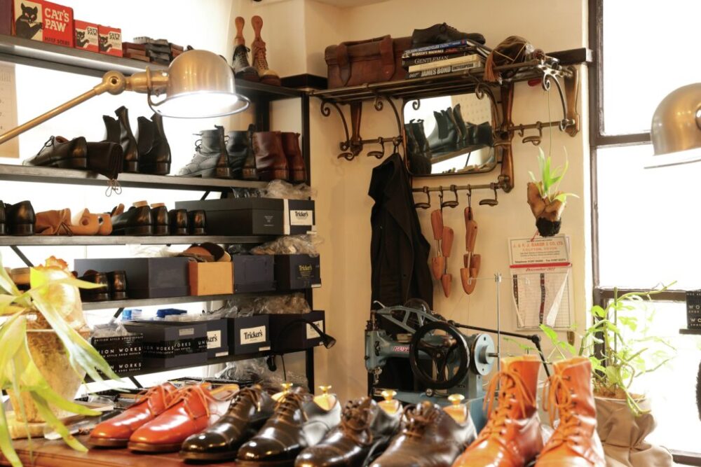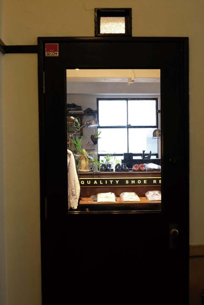 304号室はレザーシューズをメインとしたシューシャイン、シューリペアで知られるUNION WORKS 横浜店。都内近郊で営業する他店に比べてゆったりとした店内は、販売するシューズのほか、バッグやショップコラボアイテムのウエアも販売。リペアはもちろん靴磨きなどのサービスも行なっているため、空いた時間を利用してみるのも良いだろう。