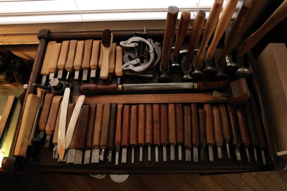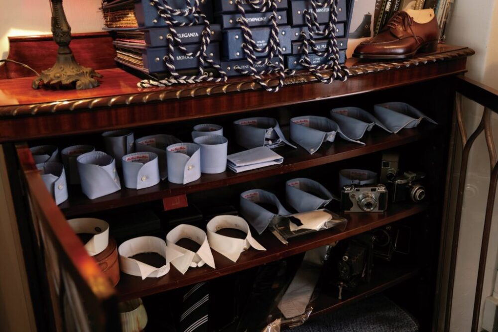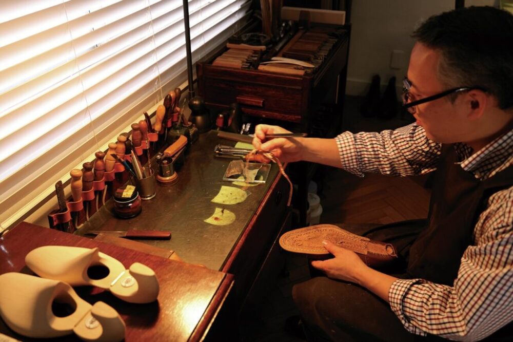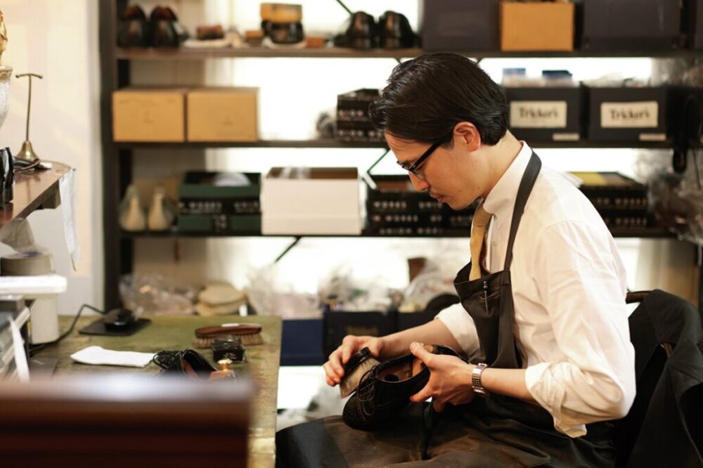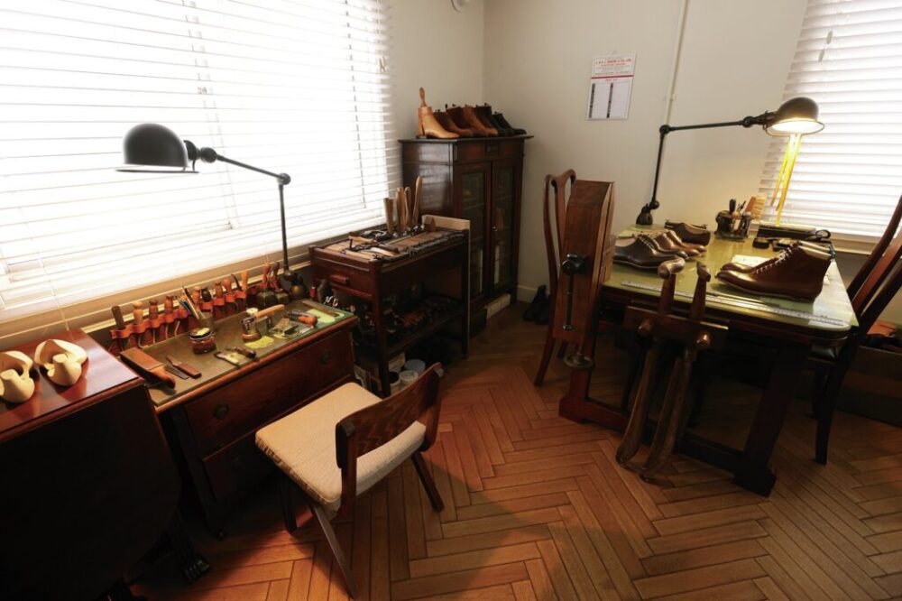 30代で靴の専門学校に通いつつ靴作りの世界へ。ビスポークシューズ店での修行を経て、夢だった独立を果たしたのが10年前。ハウススタイルはブーツだが、現在はどのハイトも特に関係なくオーダーを受け付けている。もともとTailor Grandの長谷井氏と友人だったことからインペリアルビル最上階の504Aに拠点を移してきたという。