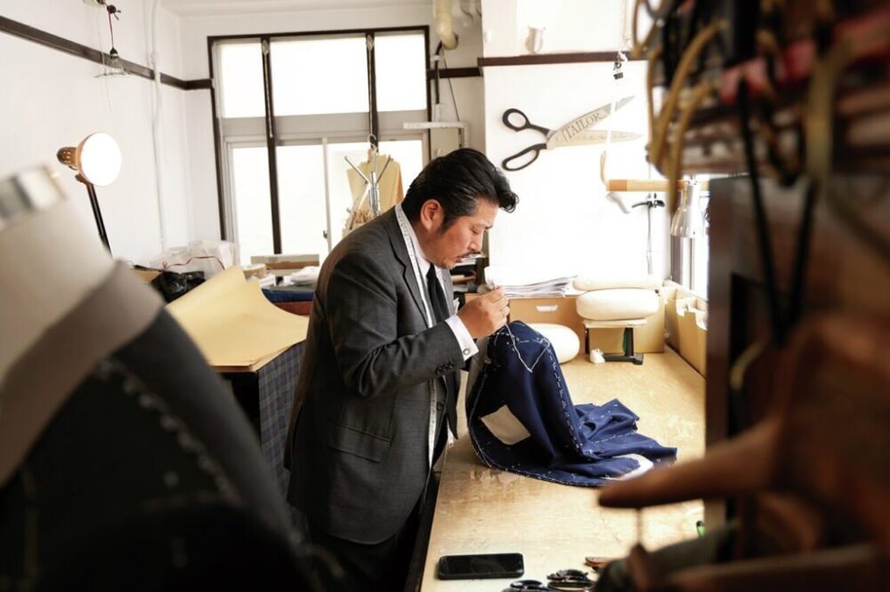 渋谷のテーラーで修行したのち、2010 年に独立。店を構えるなら地元が理想だと思い不動産屋を通して物件を探したがなかなか良い物件に出会えず。納得するカタチで、自分の足で探そうと見始めた頃、馴染みのBAR THREE MARTINIの店主から教えてもらったのがインペリアルビル。以来、301 号室で長年、オーダースーツを手掛けている。