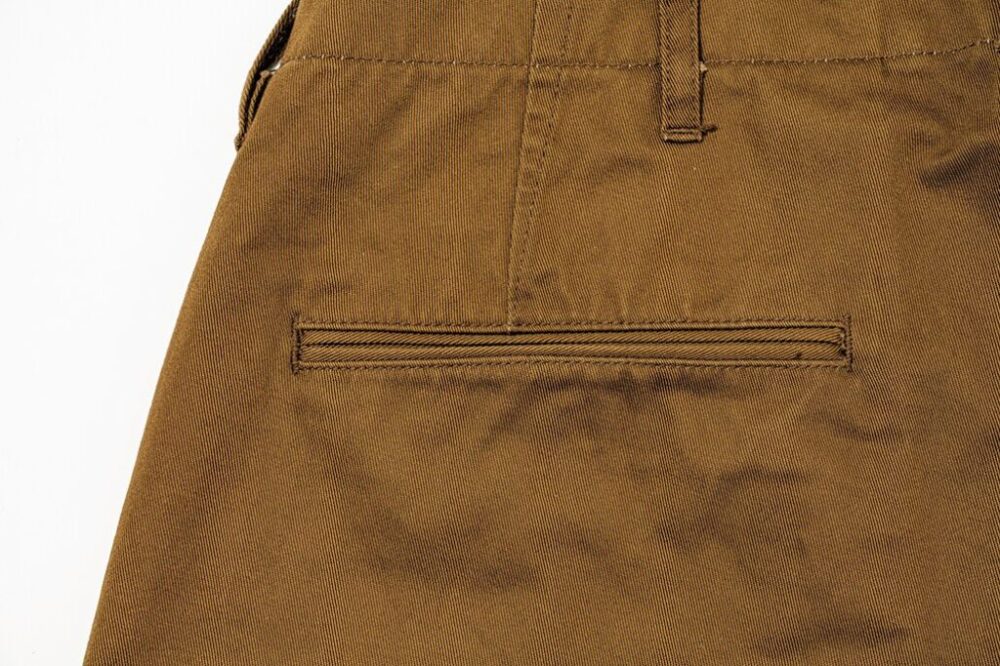 日本に於いてはチノパン(和製英語)と呼ばれ、米国など海外ではチノーズやカーキーズなどの名称で親しまれている定番ボトムス。そのルーツを掘り下げると1941年まで遡る。当時、孤立主義を掲げていた米国が第二次世界大戦に参戦した年でもある。その結果、米軍は機能的な軍服の開発に着手せざるを得ない状況となり、「M-41」と呼ばれる戦闘服を開発することとなる。これはジャケットやシャツと共にトラウザーズも展開され、このトラウザーズこそが、通称“41カーキ” と呼ばれるアイテムなのだ。