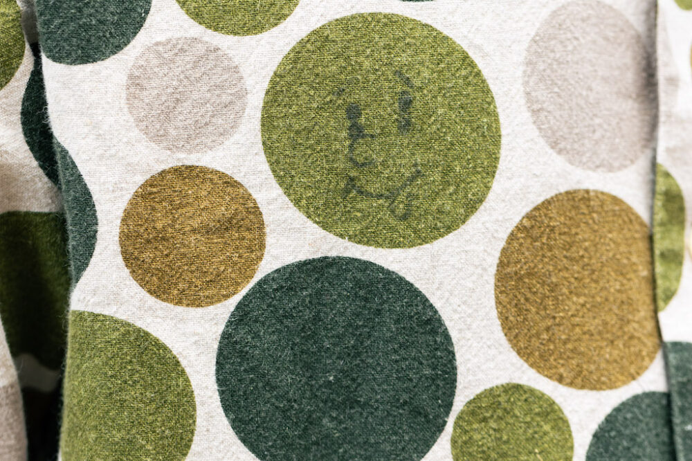 これは去年(?)もしくは一昨年のアイテムなのですが、僕のお気に入りのシャツです。ミッドセンチュリーでよくあるこのバブル・水玉デザイン。 日本では草間彌生さんをイメージさせますが、迷彩のようなカラーリングに、オーバーサイズのオープンシャツ。 まだまだオーバーサイズ感が抜けきれない今日この頃でも、なかなかないアイテムだと思います