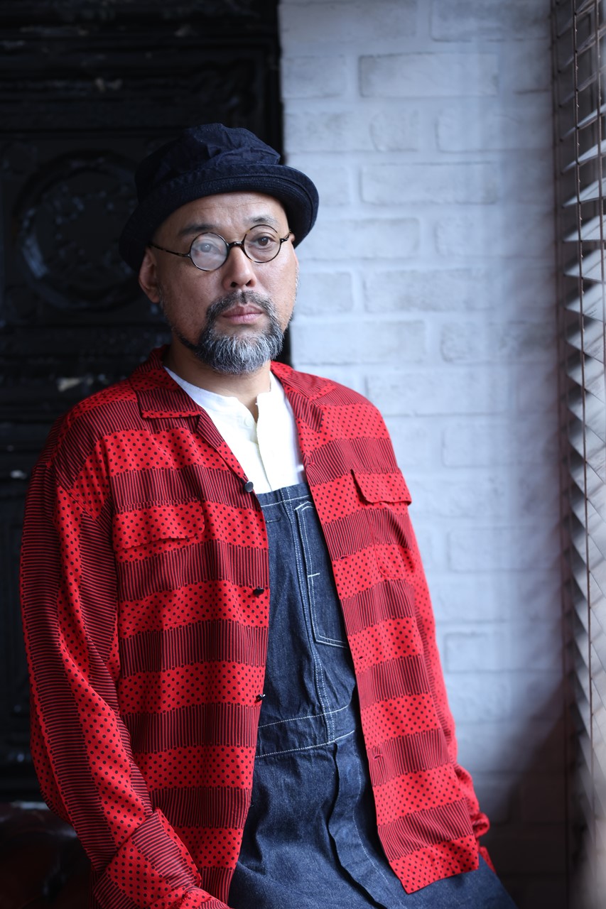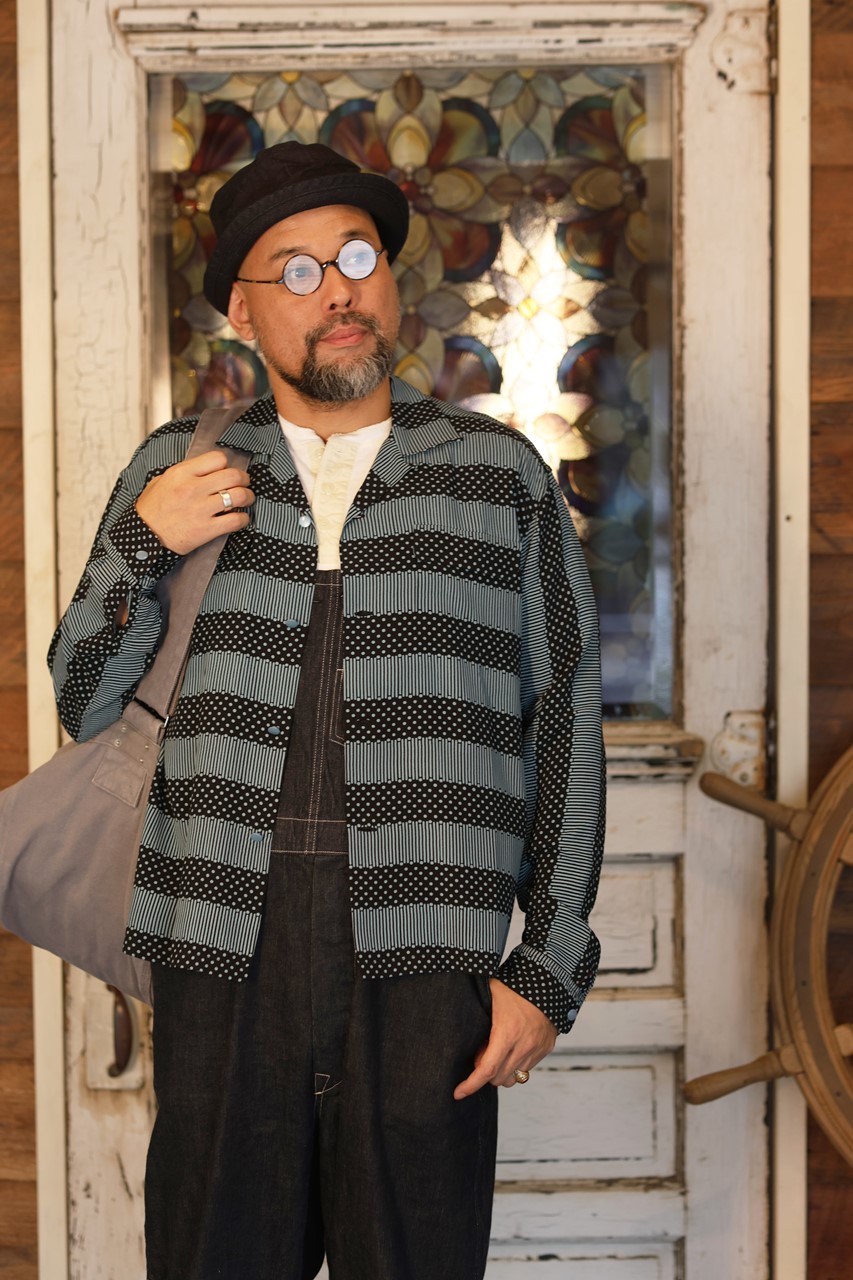 モデルは新宿にあるセレクトショップ、「ジャンキースタイル」マネージャのカルロス西さん。スタイリスト的にはStyle Eyesの真っ赤なレーヨンシャツが似合うなぁ〜と思ったんだけど、インディゴ特集の表紙としては、インディゴアイテムのオーバーオールと帽子が脇役すぎたのでボツらせていただきました。オーバーオールはHEAD LIGHT、ハットはSugar Cane。