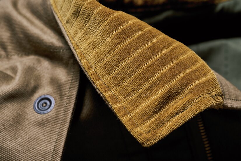 ベルベットとコーデュロイの内襟は、このジャケットの特徴。当時の太い畝の生地を忠実に再現した。