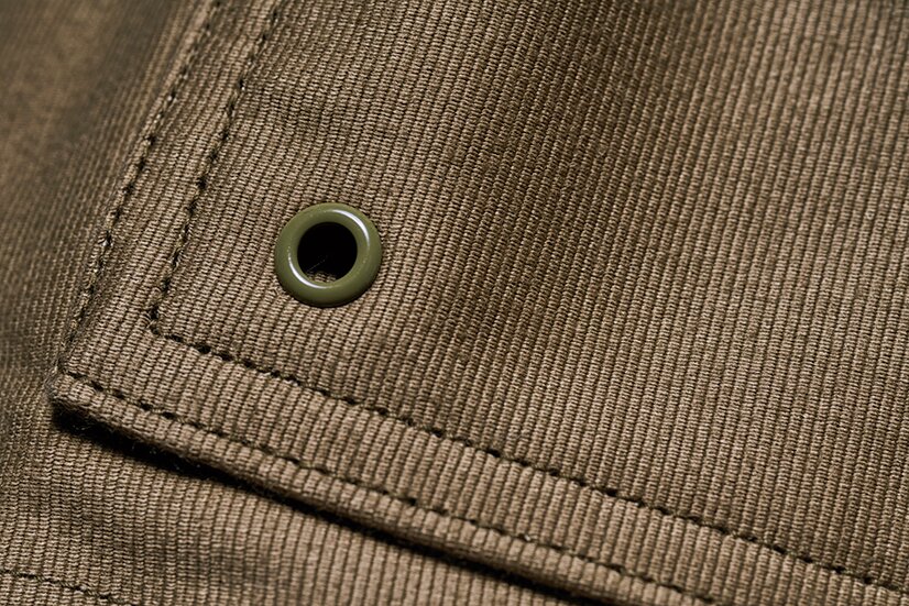 マチ付きのスナップボタン付きポケットは、パラシュート部隊のウエアに使われていたものと同様だ。