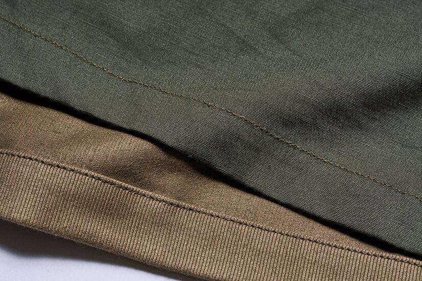 ライニング生地にはポプリン素材を使用。裾部分は縮率と通気性を考慮して「フラシ」仕様だ。