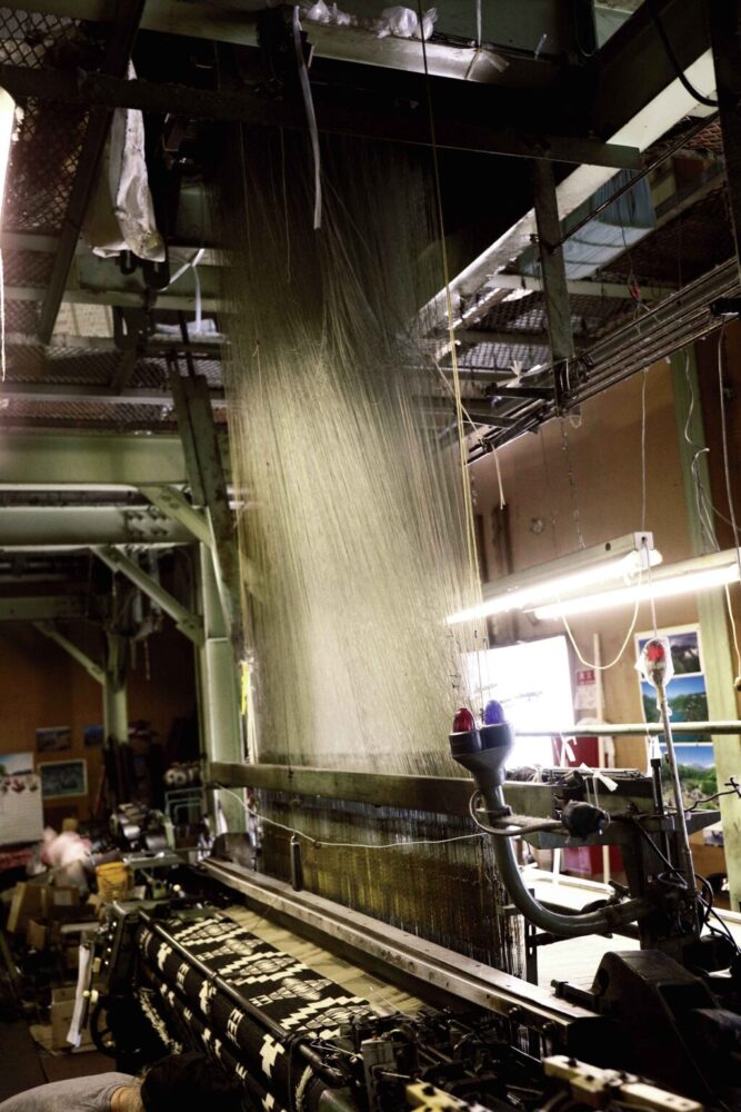 ジャカード織機で1日に織れる生地の長さは織機の調子が良くても20m程度なのだとか。タテ糸が切れたりヨコ糸がなくなったりして度々織機自体が止まるといったこともその要因として挙げられるが、その最大の理由は織りの速度。ヴィンテージのようなふっくらとした質感を出すためには、低速で織機を回すことが必須なのだという。