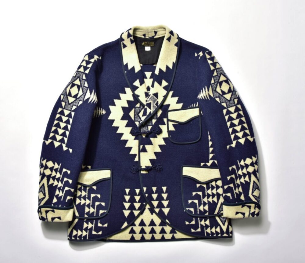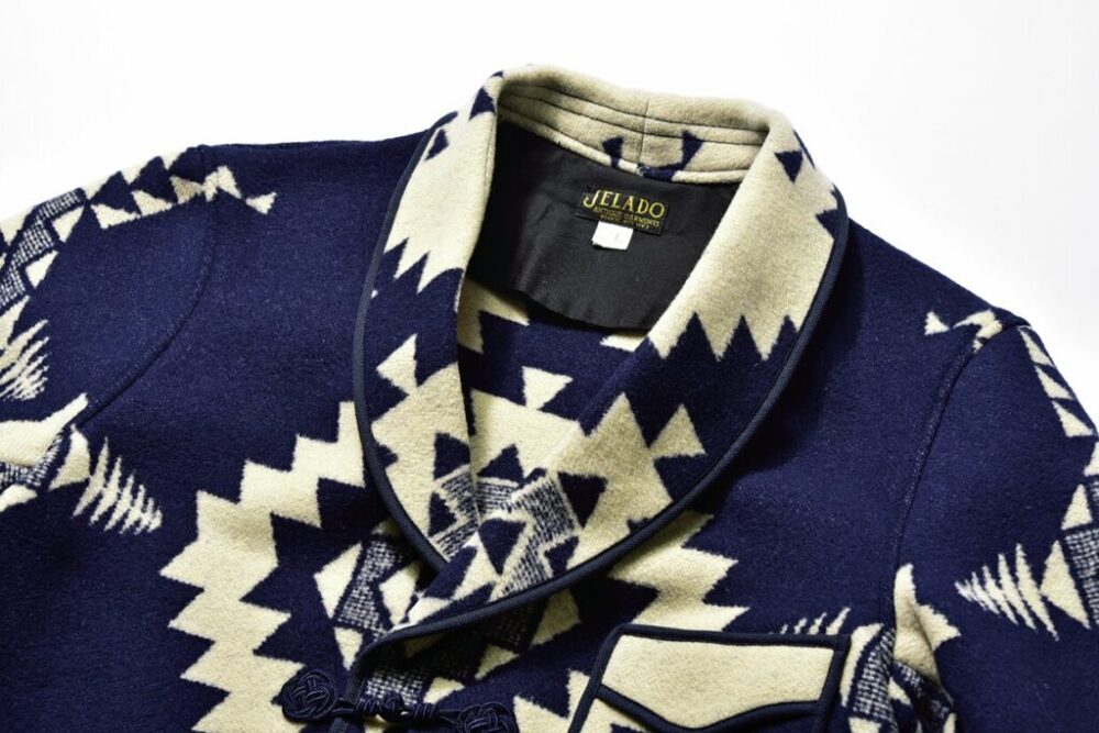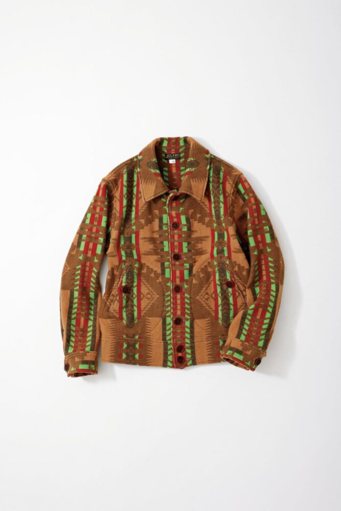 何年もかけて1940年代以前のチマヨ生地を再現するために、生地商と産地を巡り、ようやく完成した、ネイティブ柄のブルゾンタイプのチマヨジャケット。素材、織り、デザイン、仕上げ、全てにこだわったJELADO渾身の一着。両サイドにはアジャスターベルトが付く。85,800円