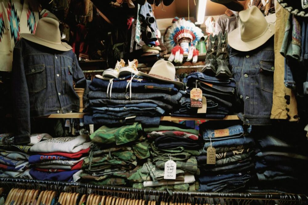 LEVI’Sのヴィンテージデニム、アメリカのスクールニットやバーシティジャケット、ウエスタンスタイルもあれば、U.S.ミリタリーも充実している。ヨーロッパ屈指のアメリカーナを得意とするショップ。本当にお宝が眠っているから驚く。