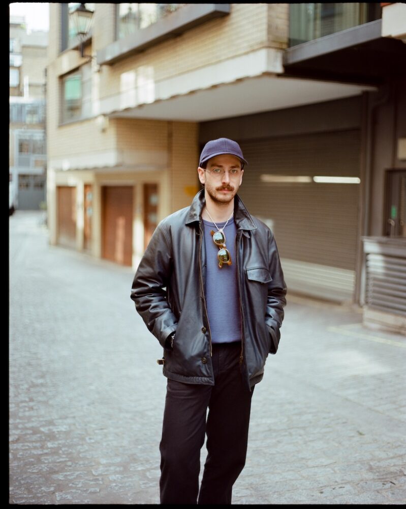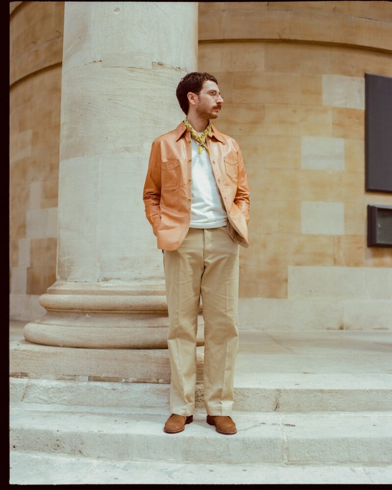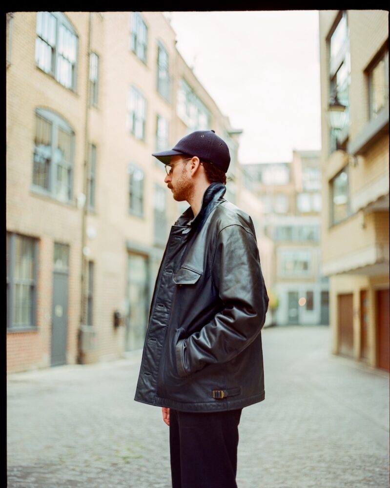 アメリカ海軍に1960年代に支給されていたコットン製のデッキジャケットをデザインソースに、オイルドキップレザーで再現したジャケット。しなやかなレザーは独特なドレープ感とストレスフリーな着心地を両立させているので、レザーながら気負わず羽織れるのも特徴。スタイリングはネイビーのレザーに合わせて同系色のカラーをあえてチョイス。ブルーのグラデーションがポイントになる。