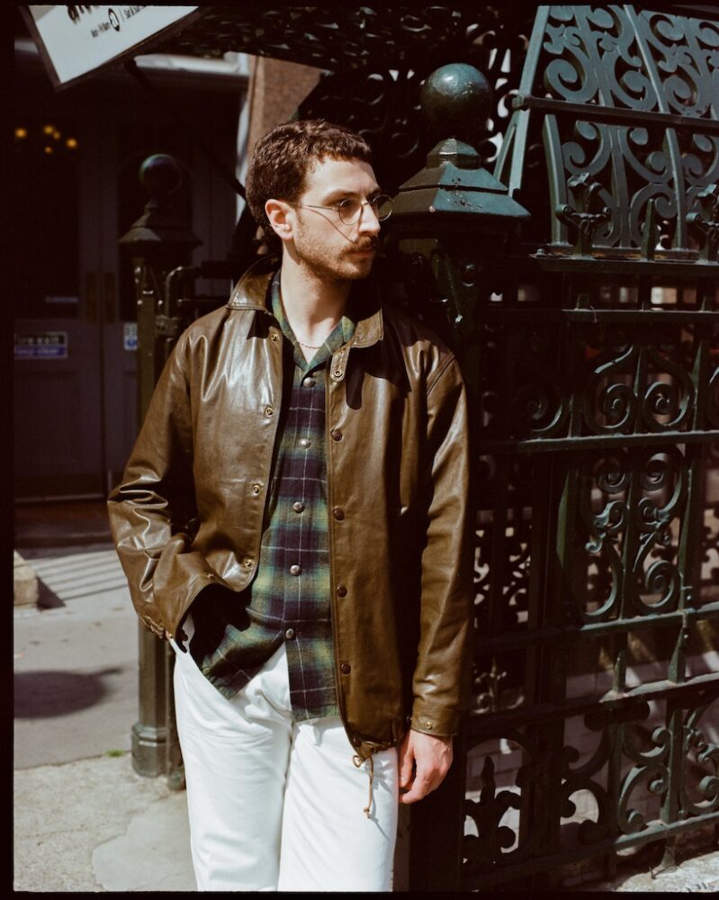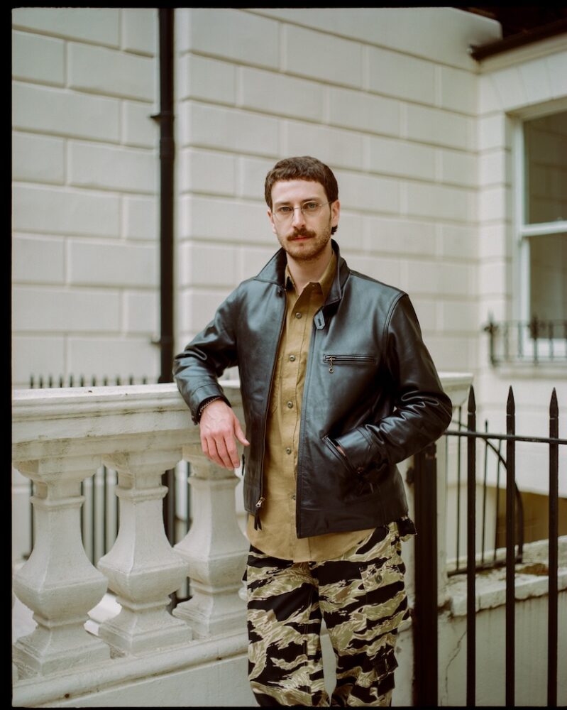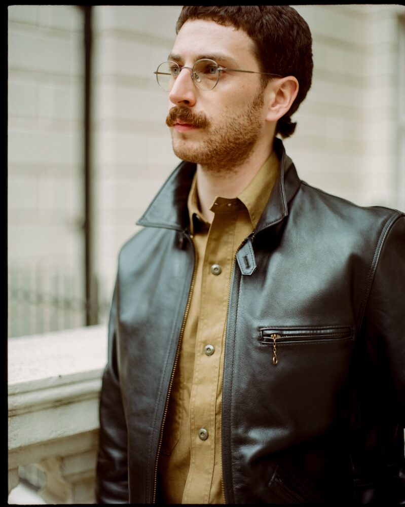 戦前に存在したスポーツジャケットのデザインをベースに、オイルドキップレザーで再構築したクラシカルなシングルレザージャケット。きめ細やかながら堅牢なキップレザーに独自のオイルを加えることで独特な風合いになっている。シンプルになりすぎないように迷彩柄のミリタリーパンツをアクセントにスタイリングする。