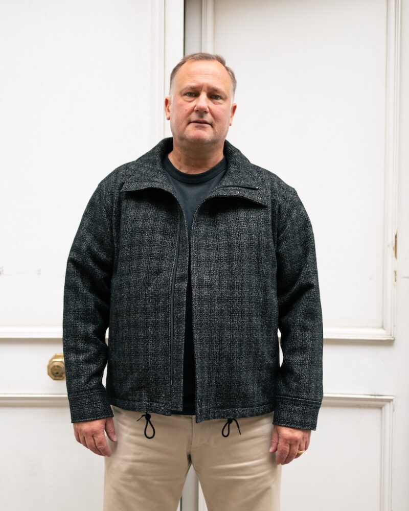WOOL SPORTS JACKET 4万5000円、BAND COLLAR SHIRTS 2万3000円