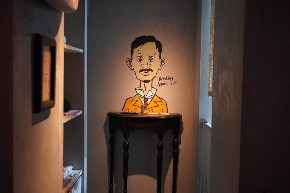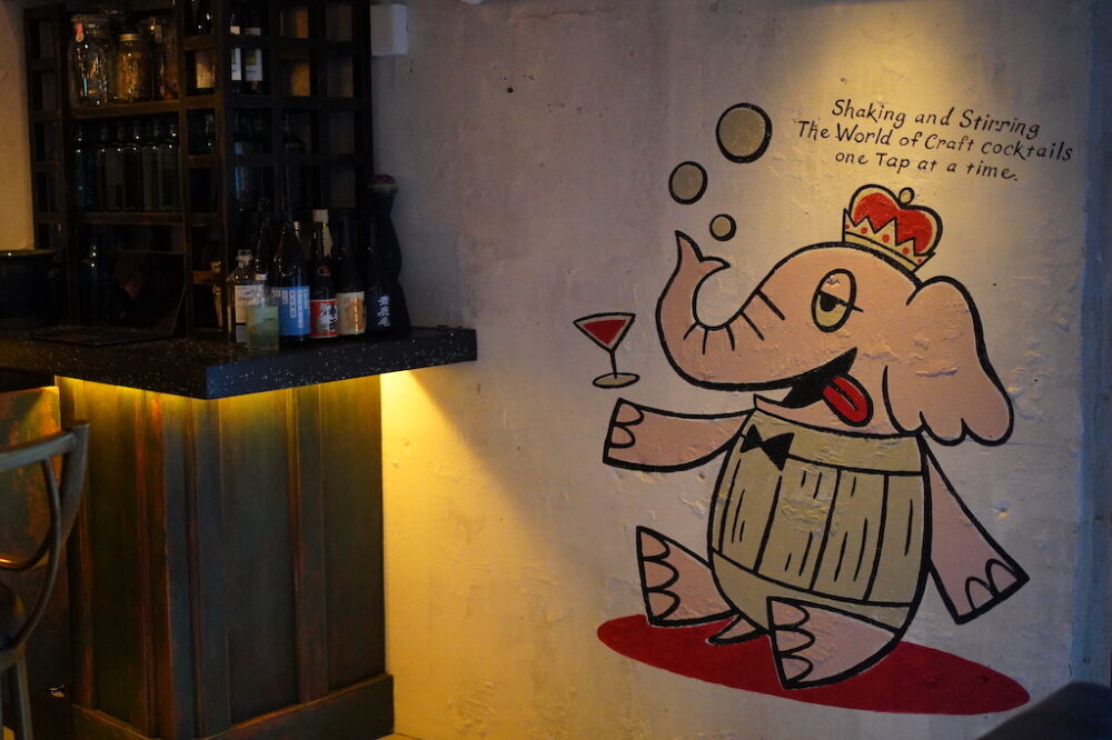 クラシカルな空間には、ところどろに昔ながらの欧米の酒場カルチャーに起因するアートワークが描かれる。この空間にあるアートワークや店舗のロゴなどをデザインするのはデザイナーでありアーティストのL.さん。それぞれのアートをハンドペイントで仕上げている。